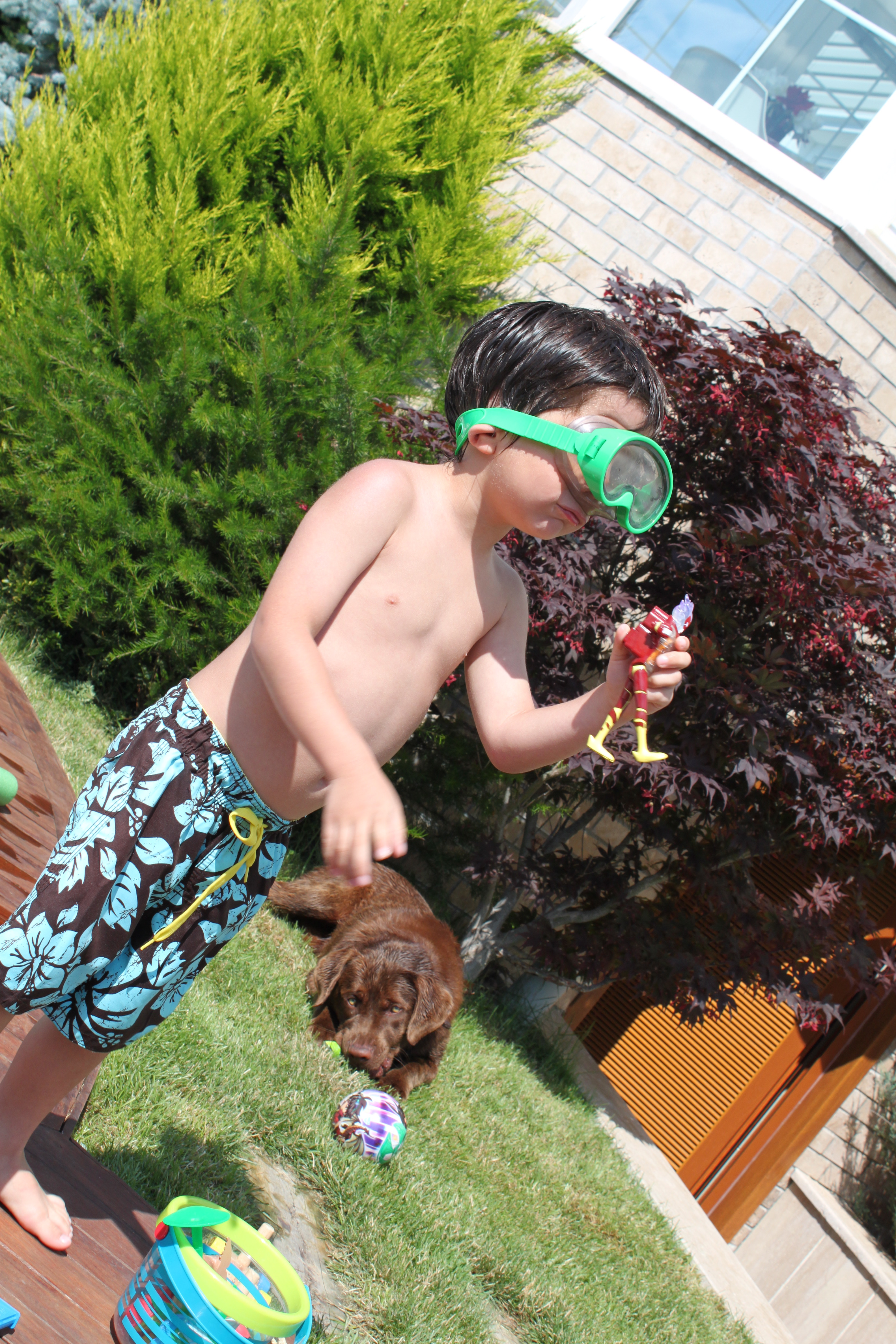 Her daim kutlama modunda olan köpeğimiz Bolt’ta bundan nasibini aldı, tabiii. Son çare yenilgiyi kabul eden Bolt; bir köşeye sığınarak tüm günü orada geçirdi. Türünün özellikleri arasında suyu çok sevmeleri olduğu halde bizim ki; pek hoşlanmıyor yüzmekten. Gerçi neremiz doğru ki; köpeğimiz normal olsun. Vilo’nun deyimiyle: